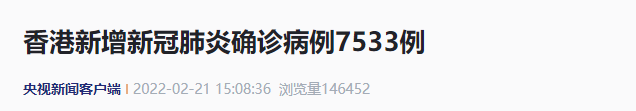 2 月 21 日,香港卫生防护中心的统计数据,香港新增新冠肺炎确诊病例约 7533 例。