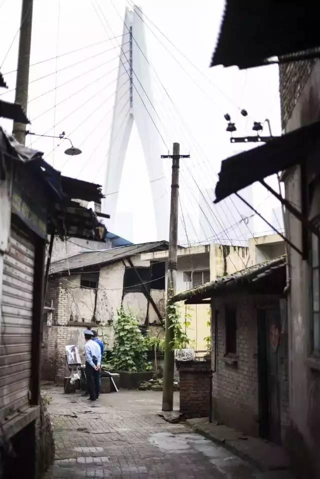 这里也是这座立体城市最彰显其魔幻现实本色的地方:轻轨在这里穿楼而过,无数的行人聚集在江边路旁,企图用手机记录下这一别致的景象。而拾阶而上,走上李子坝正街,曾经高耸入云的轻轨转瞬移到身旁。往桂花园走,一个深邃的洞子加油站出现在路边,车由洞的一头家驶入,再从另一端开出,也像是亲身沾染了这个城市让人恍惚的迷幻气息。