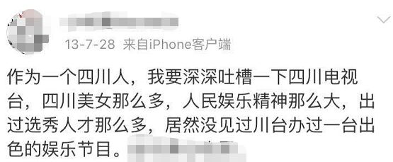毕竟,四川卫视堪称仅次于山东卫视的“最令本地人恨铁不成钢”的省级卫视,常常被嫌弃连个娱乐节目都搞不好,白白把自己在娱乐产业积累的人才优势浪费掉了。