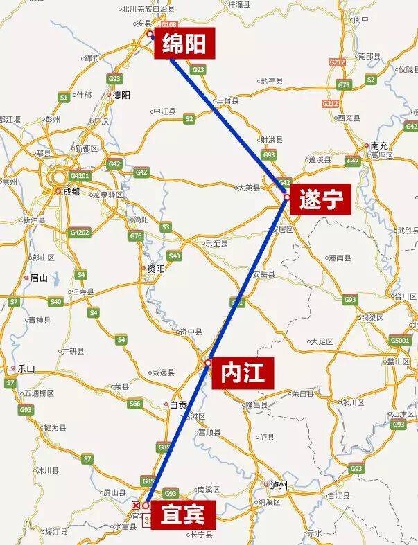除了成绵乐高铁,另一条城际线,将从绵阳始发,串起遂宁、内江、宜宾四市,穿行在巴蜀大地上。