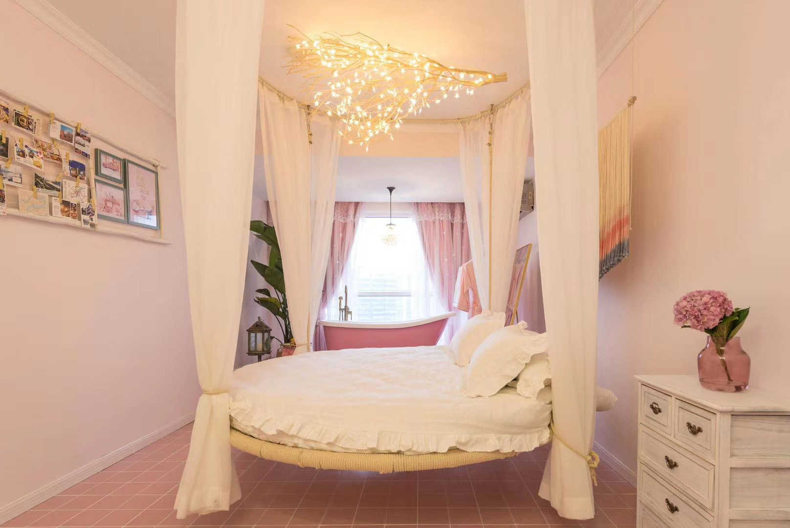 正好赶上木鸟民宿在做预售民宿的活动,所以提前抢了一张券, 原价318的民宿 188元就可以入住了~浴缸+吊床+落地窗,超级仙女风~