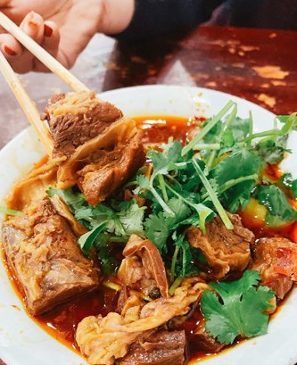 从动筷子的第一口,我就知道这家我们来对了。满满一大碗红烧牛肉只要三十块钱,而且不是像很多饭店里下面垫一层土豆和豆芽充数一碗,这里真的是货真价实的满满一大碗。蹄花汤味道鲜美,猪蹄煮的脱骨,沾着红油汁,一点不会腻,满满的胶原蛋白,怪不得重庆妹子皮肤那么好