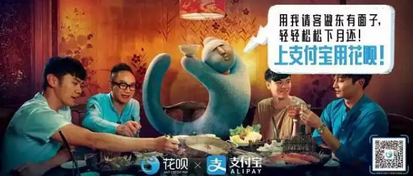 例如:用我请客做东有面子,轻轻松松下月还!上支付宝用花呗!