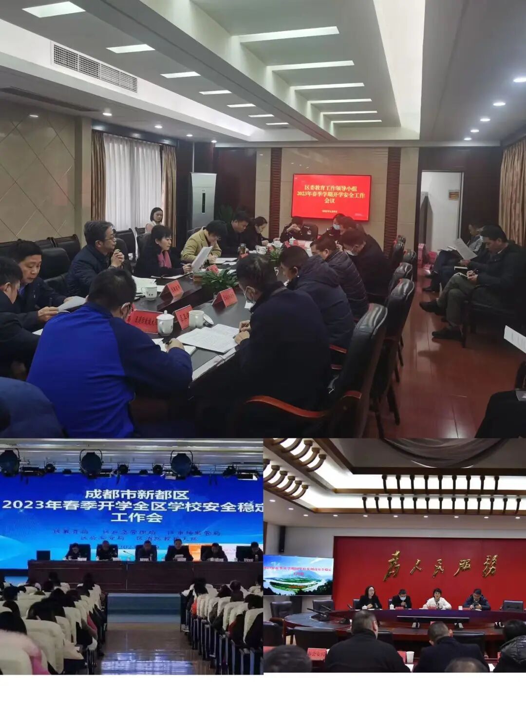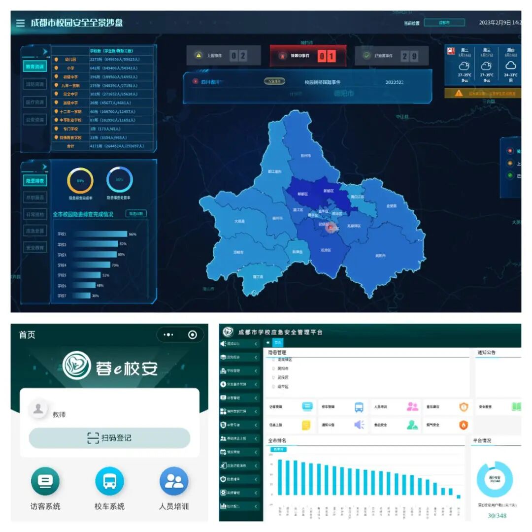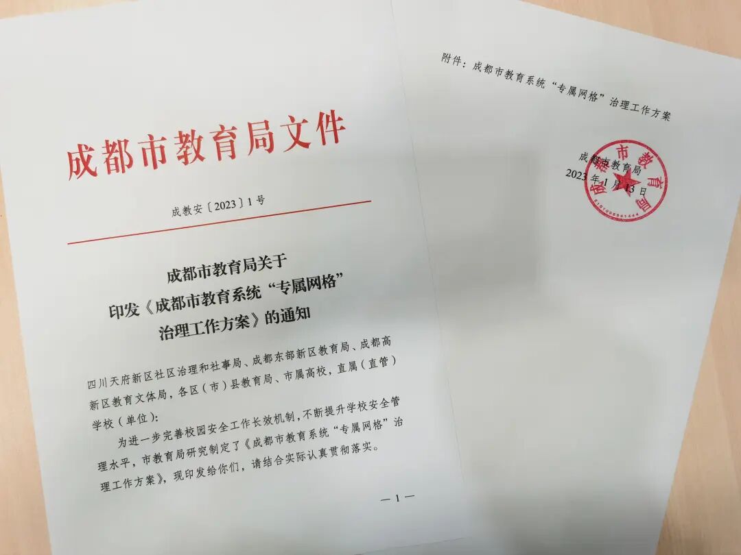 聚焦春季开学安全 新春伊始,四川也迎来了开学季。为保障校园安全,确保春季学期开学工作平安有序,各地教育系统纷纷“出招”。四川教育发布将持续推出“聚焦开学安全”栏目,报道各地做法、经验!今天我们一起来看成都市教育局的具体举措吧—— 依托“专属网格”治理机制 助力学校安全精细化管理 聚焦开学安全成都篇 春季学期开学在即,成都市教育局严格按照省教育厅关于做好春季学期开学安全工作的通知要求,在市委市政府坚强领导下,在市级相关部门的大力支持下,全面做好各项准备工作,确保如期安全开学。 一 全面做好动员部署 2月8日,成都市教育局组织召开全市教育系统“专属网格”推进会暨2023年春季开学安全工作会,市教育局分管负责同志主持会议并讲话,会议以视频形式直接开至全市各大中小学校和幼儿园。市教育局相关处室负责同志、各区(市)县教育行政部门分管负责同志和安全工作责任科室负责同志、各学校(幼儿园)主要负责同志及教职员工共计1.8万余人参会。全市教育系统坚持以“平安校园”建设为统领,以政治安全为根本,以师生平安为基础,压实工作责任,让学校安全基础能力“不生病”;优化工作策略,让学校教育阵地着力“治未病”;教育演练并重,坚决做到学校安全“防重症”。市教育局要求,各地各校开学前开展一次围绕学校食堂、宿舍、实验室、消防设施设备等重点区域的安全隐患排查整改,举办一次面向师生入脑入心的安全教育专题活动,主动会同属地街道、公安、城管、市场监管、交通等部门(单位)进行一次校园周边安全工作联络会。 成都市教育局副局长沈鹏同志主持春季开学安全工作会并讲话。 各区(市)县教育行政部门及学校参加春季开学安全工作会。 二 发挥“专属网格”治理优势 2022年9月,成都市委办公厅、市政府办公厅印发了《关于深化党建引领社区“微网实格”治理机制的实施方案》。近期,市委、市政府就“微网实格”治理中全面加强行业部门主管责任提出新要求。成都市教育局迅即研究印发《成都市教育系统“专属网格”治理工作实施方案》,明确由市、县两级教育行政部门主要负责同志分别担任本级“总网格长”,各分管负责同志任分管领域“网格长”,各科(处)室主要负责人任指导员;学校(幼儿园)校(园)长担任本“专属网格”网格长,2名以上分管负责同志任“专属网格”管理员,开学前已全部落实到人并录入“成都智慧教育云平台——教育专属网格管理子系统”中。通过“任务横向到边全覆盖、人员纵向到底抓延伸”,着力实现校园安全治理工作末端发力终端见效。 成都市教育局印发《成都市教育系统“专属网格”治理工作方案》。 成都智慧教育云平台——教育专属网格管理子系统数据录入情况(截止2023年2月10日数据)。 三 加快推动信息化手段运用 信息化建设是实现学校安全精细化管理的重要前提,成都市教育局持续发挥“成都市学校应急指挥平台”“成都市学校应急安全管理平台”“蓉e校安微信小程序”综合效用。加快建设学校安全智能预警与应急处置平台,包括1个系统基础平台、1个校园安全数据枢纽和1个校园安全应用中心构成(涵盖安全沙盘、智能安防、访客管理、隐患排查、应急处置、尽职履责等9大应用场景),目前已进入初验前联调联试阶段,预计春季学期将首先在市直属学校试运行,进一步为“专属网格”治理提供技术保障。此外,成都市温江区、青白江区等地也积极探索基于AI技术开展校园智慧安防工作。 “成都市学校应急安全管理平台”“蓉e校安微信小程序”“学校安全智能预警与应急处置平台”。 2023年2月9日,成都市教育局赴温江区教育智慧化应急指挥中心实地调研。 四 协同做实风险隐患排查 当前,各区(市)县和学校严格对照《学校主要环节安全检查清单》12个类别、50个主要风险(点)源、298项重点检查指标,抢抓开学前“黄金期”,“照单履职、照单尽责、照单检查”。强化部门协同,凝聚教育安全合力,确保学校安全隐患发现在“早”、处置在“小”。成都市教育局积极准备国务院安委会岁末年初安全生产重大隐患专项整治检查组延伸检查我市有关工作。赴温江区检查校车管理和交通安全教育工作开展情况,前往双流区检查森林草原防灭火和开学准备工作,会同市市场监管局、市卫健委在全市范围开展春季学期学校食品安全专项检查,协同市城管委开展春季学期校园周边市容秩序专项整治工作,为全市师生营造安全、健康、有序的校园环境,迎接师生顺利返校。 成都市教育局“专属网格”治理工作网格长,副局长沈鹏同志带队前往双流区调研森林草原放灭火工作开展情况。 春季开学前,成都市部分区(市)县召开教育工作领导小组会、安全稳定工作部门联席会、校园及周边安全稳定工作会。 成都市教育局指导武侯区教育局会同区交警一分局开展全区校车安全检查。 相关阅读