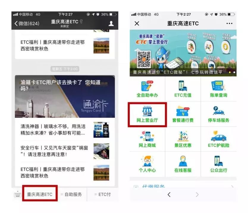 今日 重庆高速集团发布消息 按照交通运输部统一安排 重庆与四川作为全国试点省市 即将率先 取消两地之间的高速公路省界收费站 我市预计有40多万ETC用户 需要对通行卡或者设备进行升级 为此,从26号开始 ETC网点和部分高速公路服务区 将提供免费升级服务 渝蓉高速省界收费站。 罗斌 摄 高速集团路网公司介绍,根据重庆和四川取消省界站工作安排,川渝省界站撤除之日,重庆高速公路范围就开始停止使用渝籍卡(具体时间以交通行业主管部门公告为准)。 届时,重庆市域内高速公路不论是ETC车道还是人工收费车道,渝籍卡都不能再使用。 同时,取消高速公路省界站后,高速公路通行费结算由省内结算调整为跨省结算。高速集团在测试过程中发现,重庆ETC用户使用的OBU(车载电子设备)中有部分华虹GS11型OBU不适应新的技术要求,安装了这些OBU的车辆在省界收费站撤除后,无法正常通行,同时可能会造成ETC卡被锁,影响车辆ETC正常使用。这部分车辆OBU设备需要升级。 重庆高速集团数据统计,目前渝籍卡ETC用户约11万名,华虹GS11型OBU需升级的ETC用户约30万名,这些用户车辆都需要换卡或升级。 需升级卡样式: 不需升级卡样式: 渝籍卡ETC升级需携带车主或代办人身份证原件、车辆行驶证原件,驾驶需升级车辆,前往重庆高速ETC自营网点、流动升级点升级,流动升级点根据用户需求在停车场、交通枢纽站等地设点。升级车辆超过20辆的单位(含用户自发组织的升级团体),可通过023-12122进行预约升级。 为保障升级工作平稳有序推进,确保服务网点周边交通秩序安全畅通,给用户创造更有序的升级环境,重庆高速将于11月26日起按车牌尾号逐步停用渝籍卡ETC,并实施分批次升级方案,具体如下: 11月26日—12月2日,车牌尾数1、6 12月3日—12月9日,车牌尾数2、7 12月10日—12月16日,车牌尾数3、8 12月17日—12月23日,车牌尾数4、9 12月24日—12月31日,车牌尾数5、0 届时会采取预约的方式主动通知用户升级。请用户密切关注手机短信、微信公众号“重庆高速ETC”、网站www.gs12122.com的信息推送。 注意事项 1、2019年6月30日前提供渝籍卡ETC免费升级服务,之后对于设备质保期到期的用户不提供免费升级,如设备不支持升级,需支付设备费。 2、渝籍卡ETC不升级,原ETC账户余额不变,领取CPC卡仍可在高速公路人工车道缴现金通行。 3、服务区不支持渝籍卡ETC升级。 4、升级服务点会随用户需求而调整,将及时发布在微信公众号“重庆高速ETC”、网站www.gs12122.com。 (一)什么是OBU? OBU是ETC用户安装在车内的设备,一般安装在前挡风玻璃上,ETC卡插入使用,供车辆快速通行ETC车道。 (二)如何判断是否需要升级? 第一步——现场目检 检查自己所安装的设备是否如下图: 观察外观以及是否有“重庆华虹电子”这几个字,不是,则无需升级。 如是,请往下看。 第二步——继续验证 (1)手机快速查验:请扫描二维码关注“重庆高速ETC”微信公众号,并绑定ETC账号即可便捷查询。 手机查验流程如下: ①进入首页点击【重庆高速ETC】主菜单,并点击【网上营业厅】功能。详见下图: ②进入网上营业厅界面点击账户业务的【车辆信息】菜单,点击需要查询的ETC账户。详见下图: ③查看状态是否需要升级,下方OBU是需要升级了↓↓↓ (2)询问现场工作人员:在重庆高速ETC自营网点,以及具有升级服务点的重庆高速服务区、流动升级点,询问身穿“ETC升级”字样服装的工作人员或者柜台业务人员。 升级方式 为保证可能受影响的车辆正常通行高速公路,重庆高速ETC通过部分服务区、自营网点以及流动升级点,以让用户少跑路、少排队的方式,为用户提供便捷升级服务,主要有四种途径: 1、服务区快捷升级点:已在围龙、大路、古路、江津、复盛、团山堡、青杠、界石、綦江、双河口等10个服务区的出省侧设立快捷升级服务点,用户可在出行途中顺便升级,后期将根据升级情况调整服务区位置和数量。提供升级服务的服务区前LED情报板有提示,请大家留意。 2、自营网点:重庆高速ETC通过15个自营网点提供升级服务。 3、流动升级点:重庆高速将成立多支流动服务队在停车场、商圈、客运站、交通枢纽站等地为用户提供升级服务,用户可以在外出办事或者休息期间灵活安排升级计划,规模和服务点位置将依据用户反响调整。 4、上门服务:升级车辆超过20辆的单位(含用户自发组织的升级团体),可以通过联系023-12122预约集中升级。 提醒 1、OBU升级不收取费用,免费升级。 2、为便于用户知晓OBU升级,重庆高速会对用户预留的手机号码发送升级提示短信。由于部分用户手机号码更换或者设置短信拦截,无法收到短信,此部分用户还需通过微信公众号“重庆高速ETC”查询是否需要升级。 3、极少数OBU在升级过程中可能会出现故障,现场升级人员会协调免费更换。 4、不通行外省可不升级。请大家根据自己出行计划,合理安排升级时间和方式,避免浪费时间。 5、升级服务点会随用户需求而调整,将及时发布在微信公众号“重庆高速ETC”、网站www.gs12122.com。 新闻多一点 重庆高速ETC自营网点 (提供OBU升级及渝籍卡ETC升级) 服务区升级点 (仅提供OBU升级) 序号 服务区名称 所在位置 工作时间 1 大路服务区 成渝环线高速出城方向(璧山区) 9:30—16:00,周末无休 2 古路服务区 包茂高速出城方向(渝北区) 9:30—16:00,周末无休 3 围龙服务区 渝蓉高速出城方向(铜梁