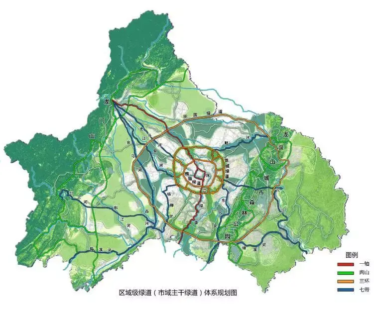 或许是巧合,就在一千万成都人注册共享单车的 2017 年,骑行爱好者的天堂 ——「天府绿道」规划出炉了。规划中,天府绿道体系将以 “一轴两山三环七道” 的布局覆盖全市 22 个区市县。