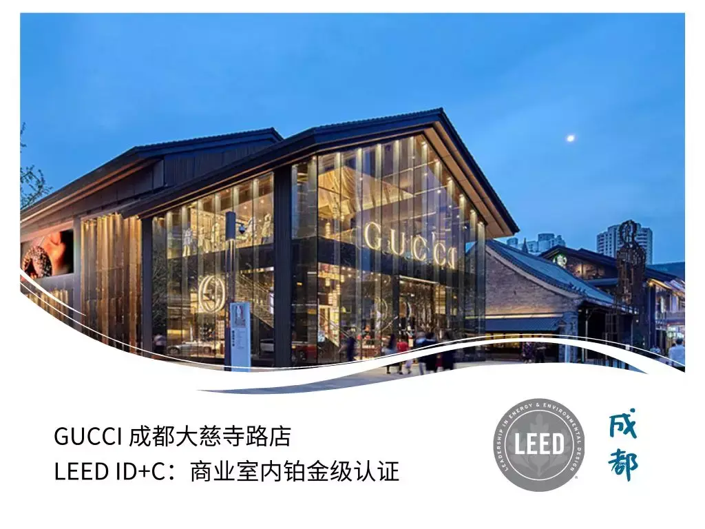 六座富含历史底蕴的旧民宅和建筑在远洋太古里散发着 “慢里” 的历史气息,从历史中穿行到 2015 年 5 月,代表太古里 “快里” 的 GUCCI 用 LEED ID+C:商业室内铂金级认证与整个社区呼应,在金碧辉煌之间,流淌着绿色的热情。