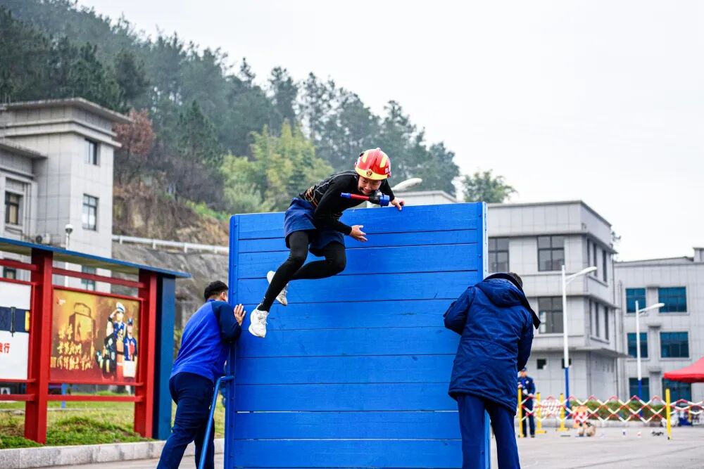 2023年 达州纪录挑战赛 达州市消防救援支队 DAZHOU FIRE SERVICES 一 开 幕 仪 式 DAZHOU FIRE SERVICES 二 科 目 竞 技 DAZHOU FIRE SERVICES 4楼绳索攀爬 百米消防障碍 负重登10楼 双人攀登6米拉梯 攀登挂钩梯操 楼层火灾内攻操 枪炮协同灭火操 三 颁 奖 仪 式 DAZHOU FIRE SERVICES 闭幕仪式上 在家党委成员为获得名次的 团体和个人颁发 奖牌及证书 四 竞 赛 成 绩 DAZHOU FIRE SERVICES 执勤消防站组 第三名 賨都大道消防救援站 专职消防队组 第三名 高新大队筹备组政府专职队 团体综合成绩