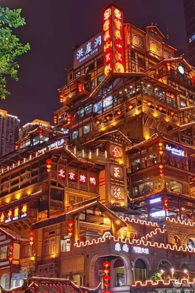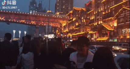 一到晚上,洪崖洞的灯光亮起