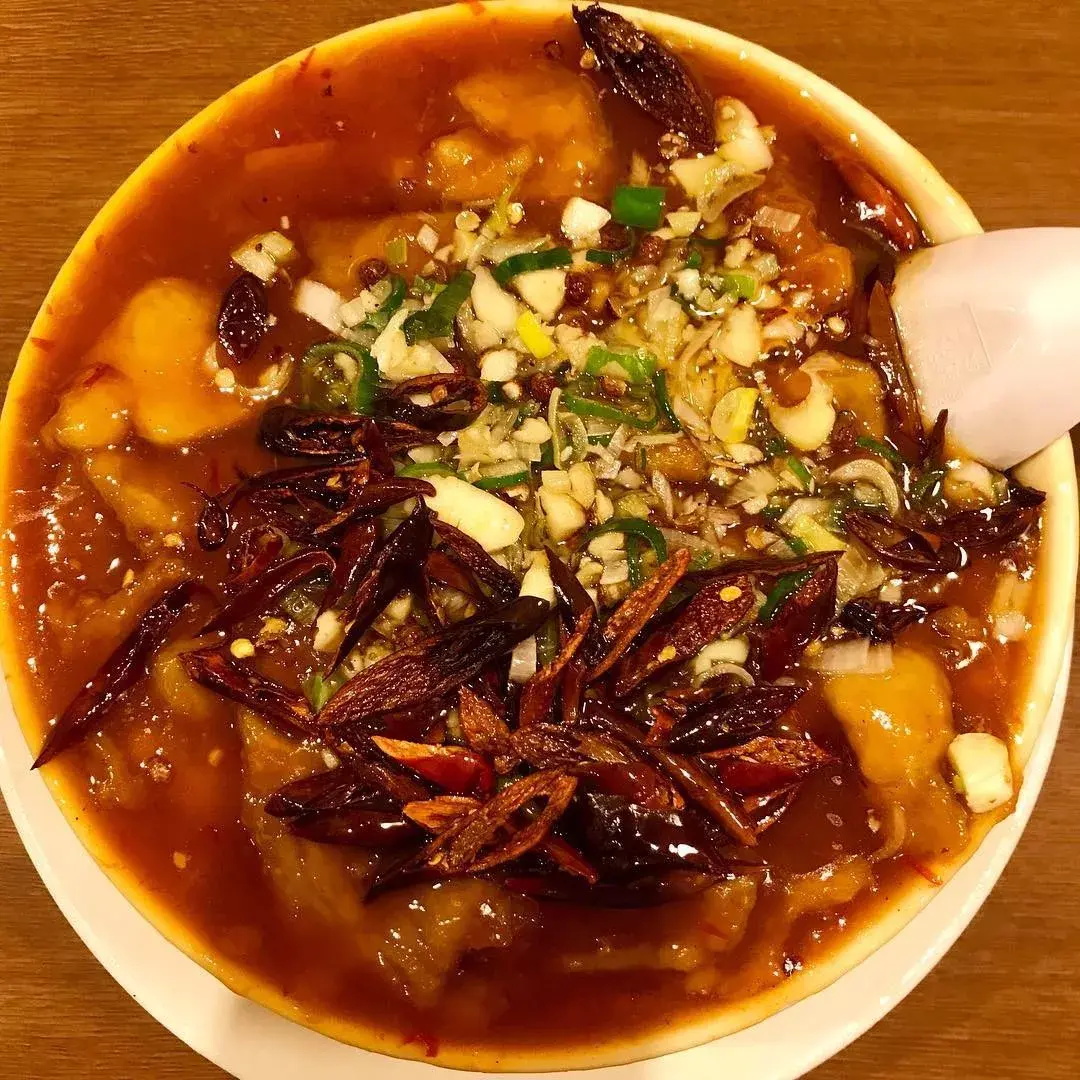 四川名菜之一,以“麻、辣、鲜、烫”为特色,吃时肉嫩菜鲜,汤红油亮,麻辣爽口,鲜香诱人!