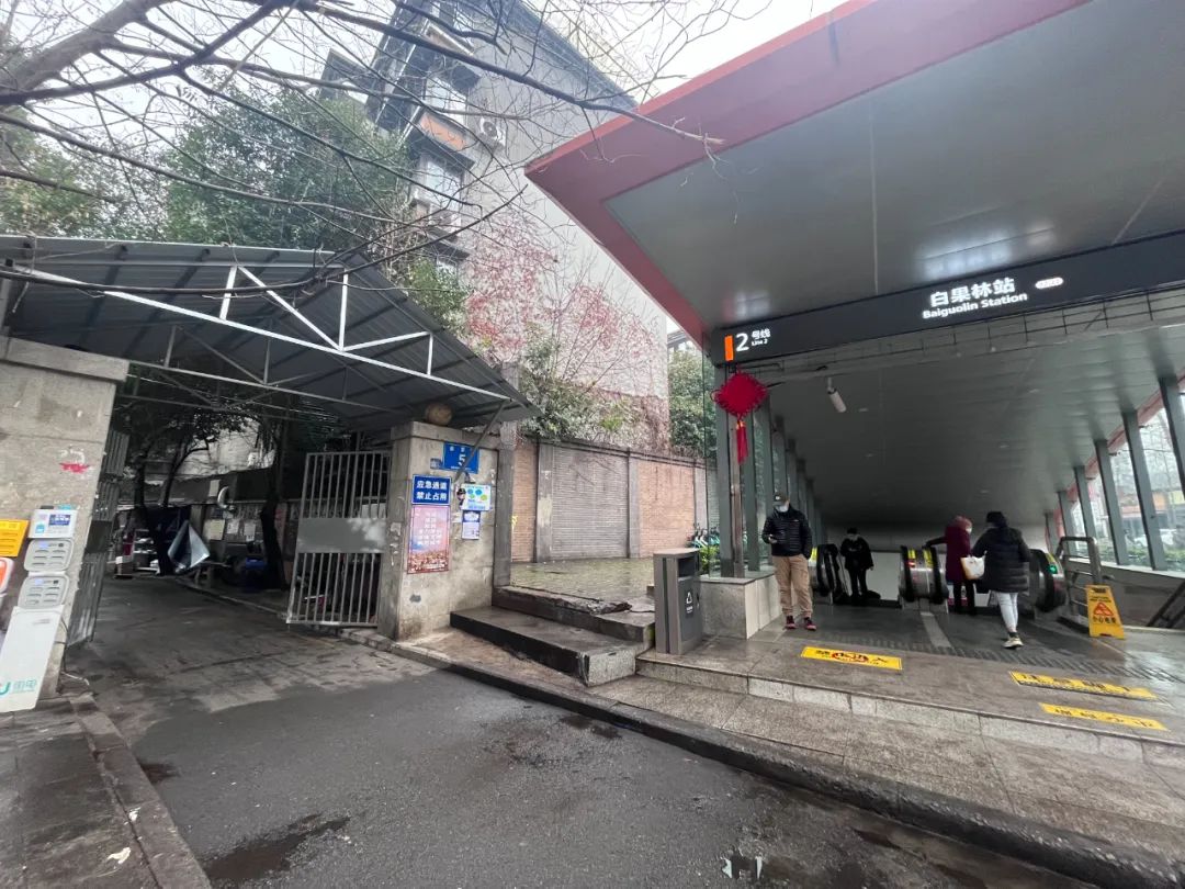 确实如网上所言,此处的河畔新世界小区侧门出来步行几步路就可踏进地铁口。据小区业主介绍,以前他们进城还要先到华阳客运站坐个公交车到四河,现在简直不要太方便。通过手机测距仪测量,步行距离约4米。