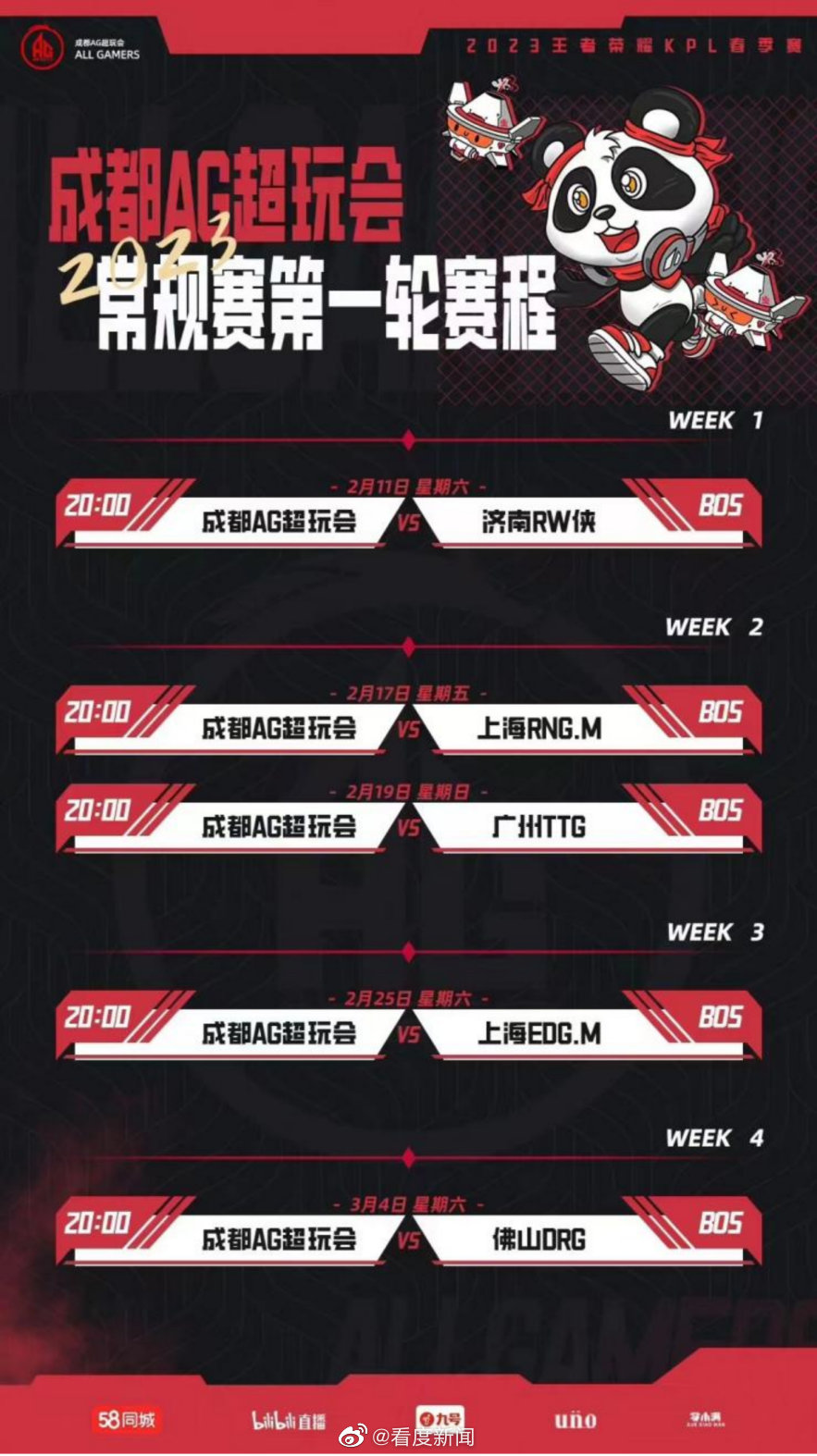 在常规赛第一轮,成都AG超玩会共有5个主场赛事。