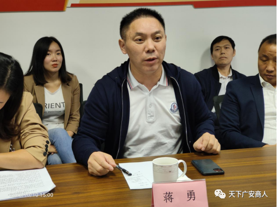 广安市经济合作局副局长沈伟、吴又成及相关科室负责人、广安驻蓉办事处、广安驻蓉产业招商组的相关负责同志,成都广安商会部分领导成员和企业家参加座谈会。