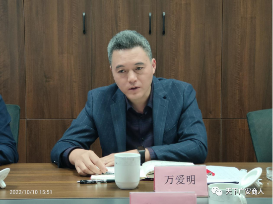 在听取了大家的发言后,广安市经济合作局局长万爱民说,我们是带着感谢感恩之心来到商会看望大家的,要感谢成都广安商会和广大企业家多年来对家乡的关心关注,感谢大家对家乡建设、抗击新冠疫情等方面作出的积极和重大的贡献。同时,也感谢大家对家乡的招商引资,对建设美丽广安所提出的好的建议和意见。他还特别介绍了广安在新一届市委领导班子的带领下,团结一心、齐心协力,为把家乡建设得更加美好而创造的难得的机遇和奠定的坚实基础。他还向大家介绍了广安将要办的一系列大事、要事和喜事。广安全域纳入重庆都市经济圈的确立,一大批重大建设项目的推进,对广安未来发展产生的积极影响和难得的发展机遇,并展望了广安的美好前景。他希望广大企业家和有识之士多到广安走一走、看一看,多了解广安、宣传广安、投资广安,珍惜机遇、参与建设、促进发展、实现共赢。广安将以崭新的姿态,全新的服务,竭诚为大家提供贴心、暖心、舒心的帮助与支持。