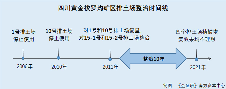 也就是说,2011年,四川黄金对1号、10号两个排土场进行了复垦,而对15-1号、15-2号两个排土场进行了整治。