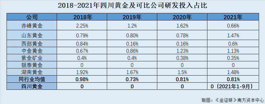 也就是说,除了银泰黄金以外,四川黄金其他6家可比公司均存在研发投入情形。