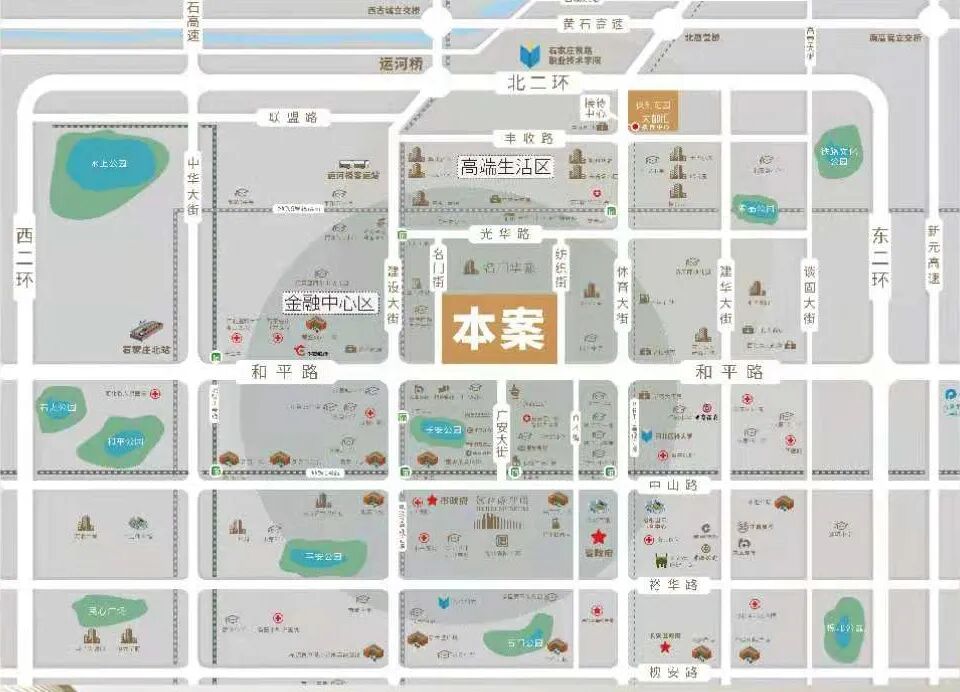 石家庄广安大街是众所周知的商业CBD,紧邻博物馆、北国先天下商圈,是长安区核心之所在。周边高端住宅云集,平均房价18000~25000元/㎡。两侧商业商务林立,配套齐全,凸显了其得天独厚的地段价值,如果能在此区域得一居所,就相当于占据了城市黄金地段资源。