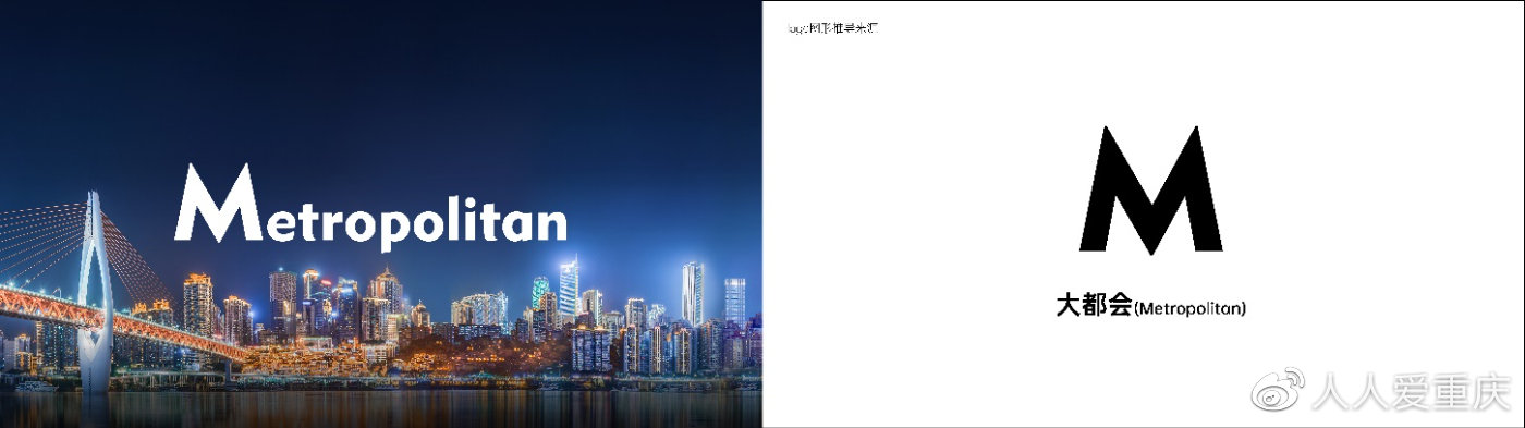 第二个“M”形元素则是大都会英文Metropolitan的首字母,代表着重庆作为国际化大都会的形象高度,也是蕴含国际大都会特质Modern(摩登)、Magnificent(高尚华丽的)、Marvelous(非凡的)等意境的首字母, 诠释着一个大都会的城市精神意义。
