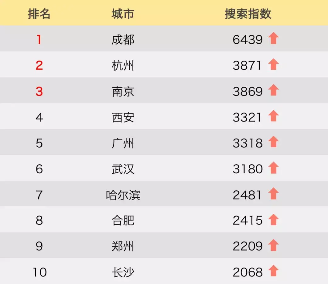 (省会城市搜索热度榜,数据来自2018年1月30日百度风云榜,制图@朱亚琳/星球研究所)