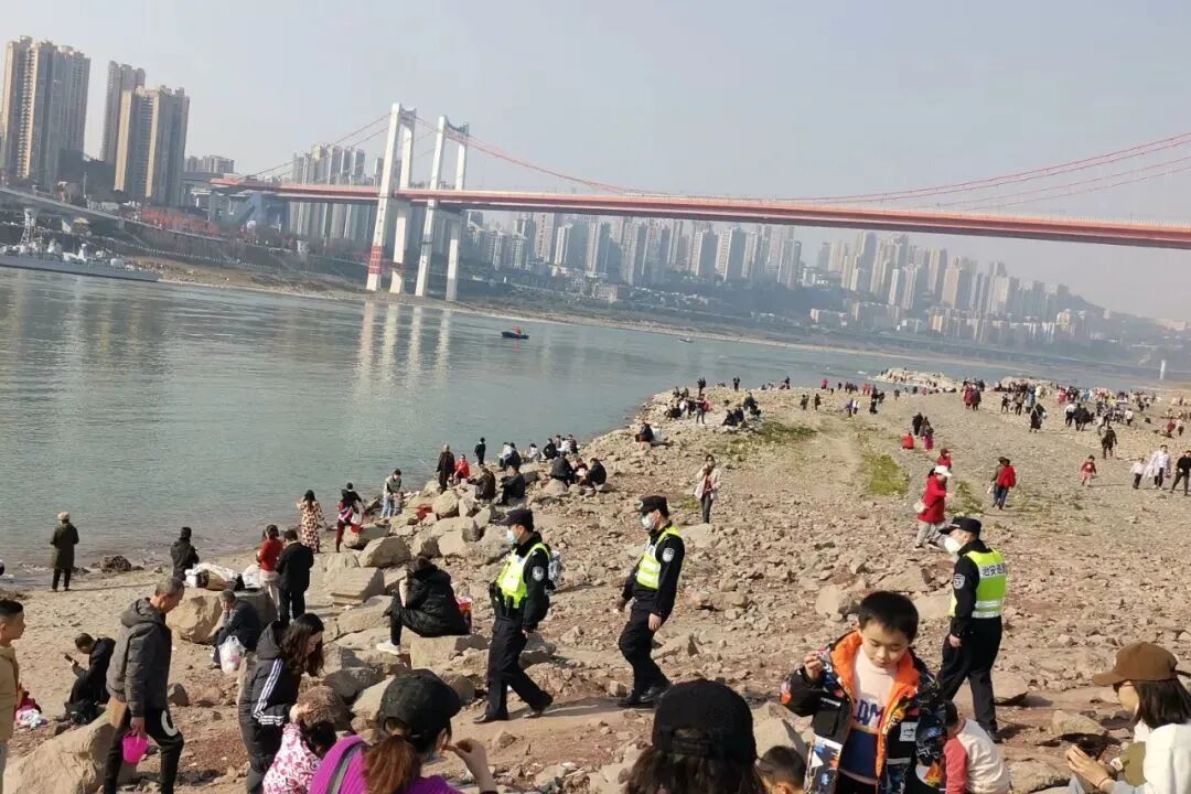 冬春枯水期,重庆主城两江四岸沿岸江滩大面积裸露,天气晴好时,市民和游客络绎不绝。重庆水警针对性部署应对保障工作,加强警力前往相关江滩公园及沿线,进一步强化巡逻防控,加强宣传劝导,提高服务群众质效,全面提升主动防控效能,为“网红”江滩增添一道暖心风“警”。重庆水警积极与属地街道社区、江滩公园管理处等部门对接,明确职责分工、强化沟通协作,确保江滩景区安全防范措施落实到位。针对枯水期江滩裸露较多的情况,民警辅警徒步环绕江滩公园,摸排梳理景区内存在安全隐患的点位,及时将情况向社区及管理处进行通报,联合相关部门增设公益救援点,加强应急救援能力建设,提高救援效率,全力做好防溺水安全防护。“江边游玩注意安全,小心脚下,不要踩滑摔倒!”“小朋友们,牵好自己的家长哦,不要到江边玩水,小心溺水!”“请大家照顾好自己的老人小孩,保管好随身物品,一定要保证孩子在视线范围内……。”正在巡逻的民警拿着高音喇叭沿途提醒游客注意安全。重庆水警部署辖区派出所和巡警支队警力,进一步加强重点时段安全防范,对在江滩公园游玩打卡的群众全方位开展安全提醒和防溺水宣传。重庆水警始终保证服务群众脚步不停歇,在坚持常态必巡点、必巡线、必巡面的基础上,在节假日等人流密集时段,加大出勤警力和巡逻频率,完善水陆联动巡逻模式,加强“网红”江滩等景区的岸线和江面巡逻防控和社会面管控,提高见警率和管事率,让群众感受到民警就在眼前,平安就在身边。警方提醒:市民朋友们到江边游玩时请注意安全,看护好同行老人和小孩,保管好随身财物,远离危险水域,确保自身安全。同时,请大家爱护周边环境,共同守护美丽长江。