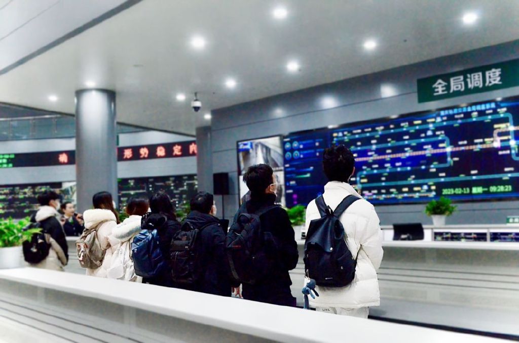 实践中,同学们参观了线网管控中心大竹林控制中心,讲解老师就轨道交通线路分布、客运情况、历史与发展等基本信息为大家进行详细介绍。听完讲解后,同学们对轨道交通线网兴趣颇深,提出了线网图每一种颜色代表什么、整个线网覆盖多少面积等诸多问题,讲解老师对同学们的问题进行一一答复,现场学习气氛非常浓厚。
