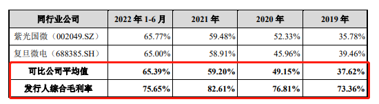 财经网注意到,报告期各期,成都华微的综合毛利率均维持在较高水平,分别为73.36%、76.81%、82.61%和75.65%,高于同行业可比公司紫光国微、复旦微电。