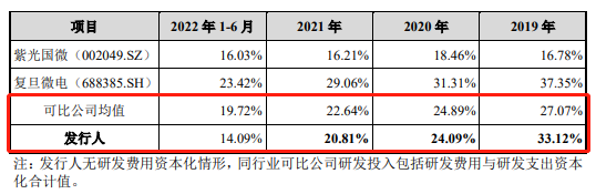 若剥离国拨研发资金,与国内厂商相比,成都华微的自筹研发费用率较低,且近年来呈下滑趋势。