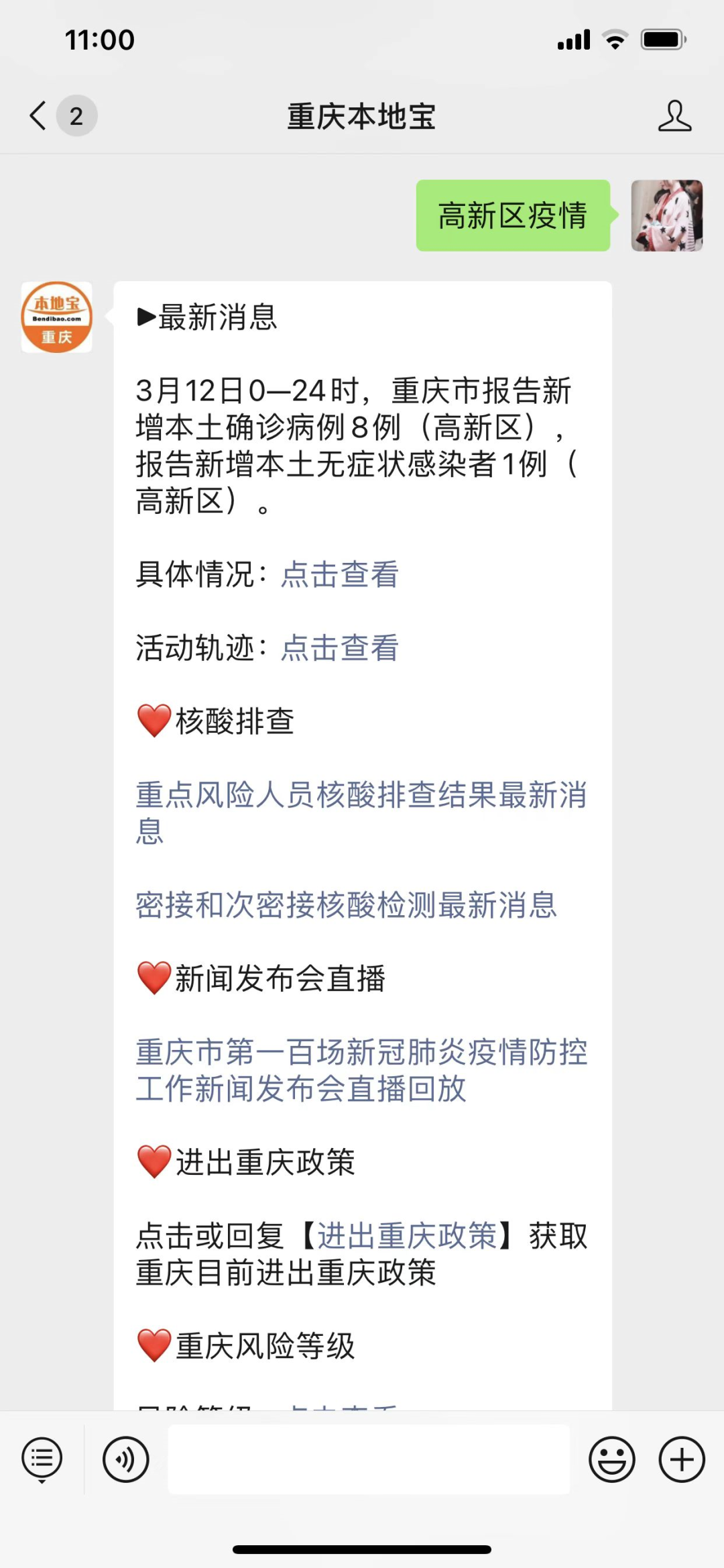 回复【疫情】获取重庆疫情最新消息