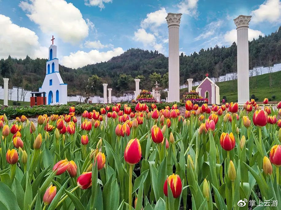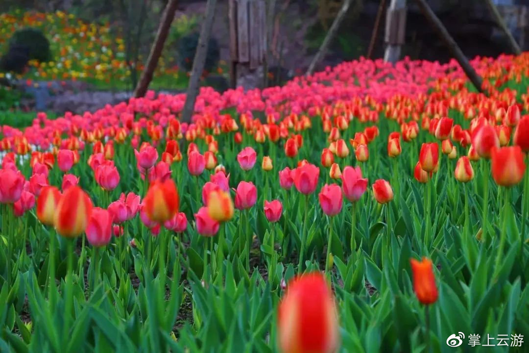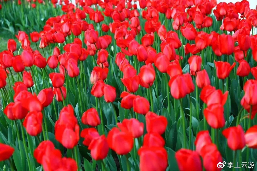 万株郁金香争相绽放,如果你深入花丛,脚下的裙摆还会和花朵擦肩而过惹得一身花香。