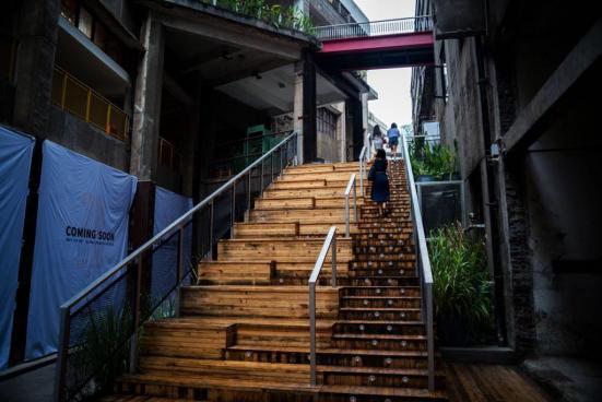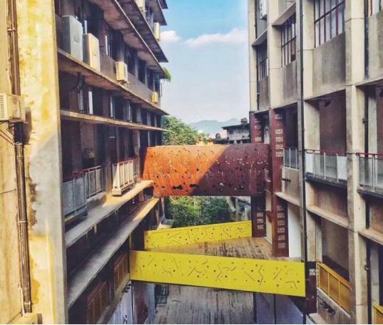 来到鹅岭二厂最重要的动作就是拍照,工业化的廊桥,斑驳的老墙,树荫下的光影,都是好风景,一不小心,就能拍出文艺满满的照片。