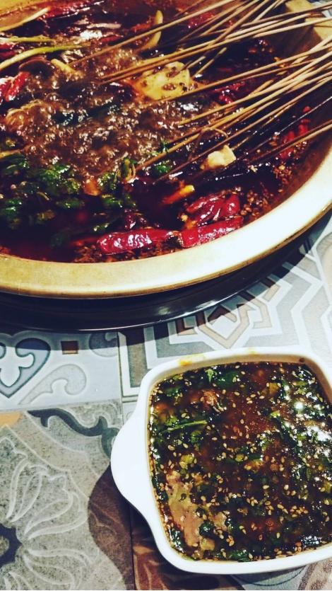 石灰市李记串串香,这家老店没有装修,民房改的,很多人排队。我排了快两个钟头,拿了号去较场口夜市逛逛,事实证明还是值得排队的。食材很新鲜,几个大冰箱可选,串串最爱鸡脆骨,锅底也是点的中辣,超级划算好吃。