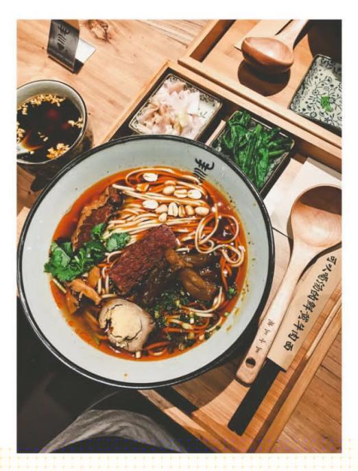 三十三碗黄牛肉面环境非常好,一开始到门口的时候我以为是喝咖啡吃华夫饼的地方,闹中取静的面馆,环境满分,特色招牌就是一天只卖三十三碗的特色黄牛肉面。