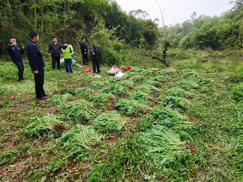 因该地四周均是竹子和野草,人烟稀少,一般不会有人种植大量的草本植物,这种反常现象引起了明月镇工作人员的警觉,于是他们前往仔细查看,通过初步辨识,认为这些草本植物很有可能是罂粟幼苗。