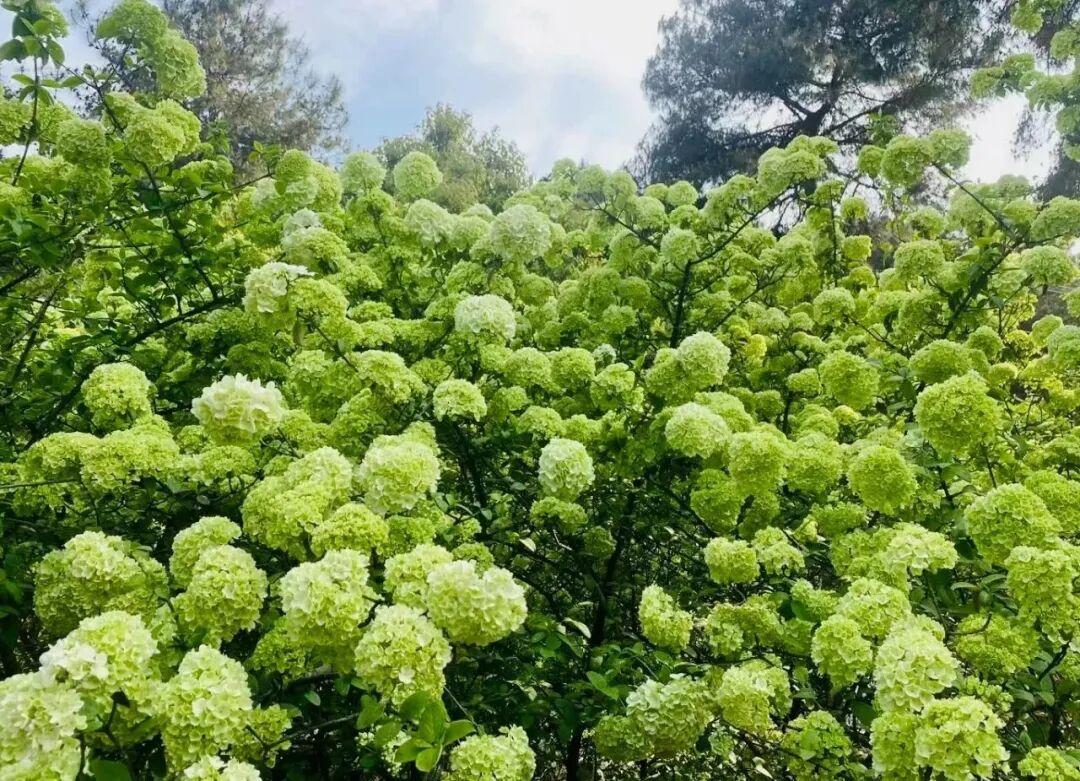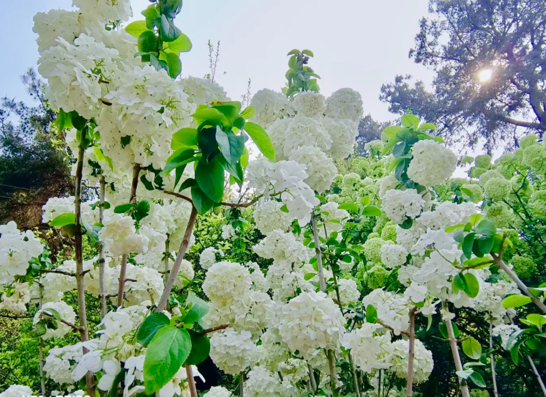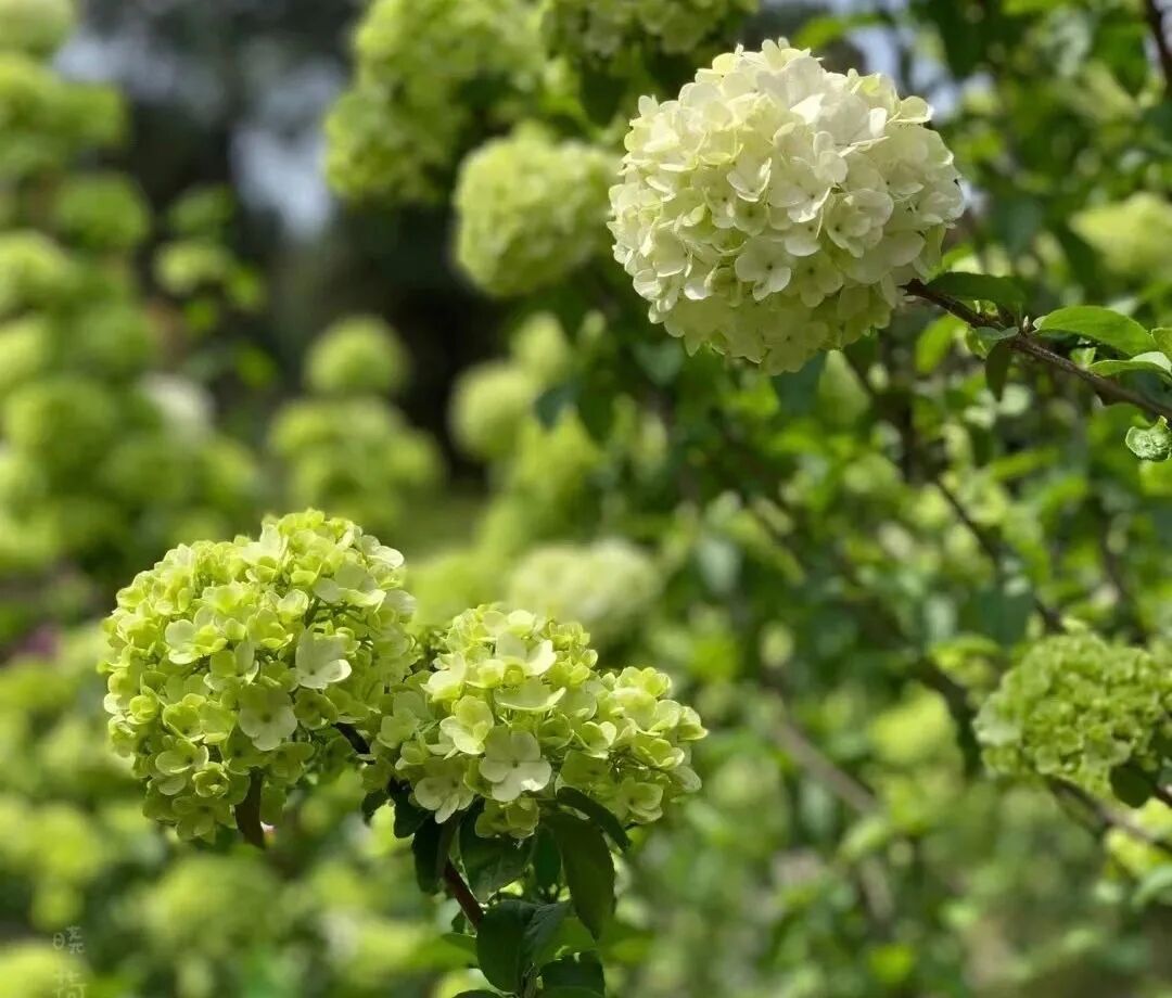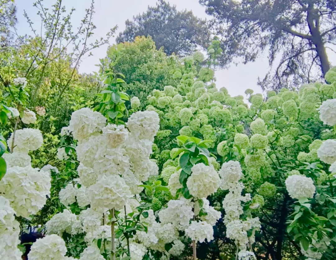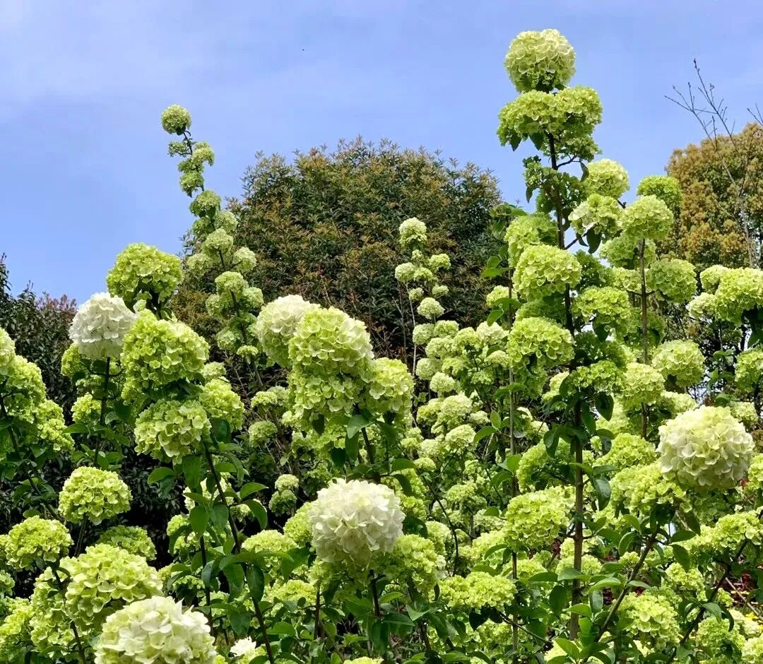 这里的绣球花颜色各异,初开时淡雅嫩绿,盛开时清白如雪。