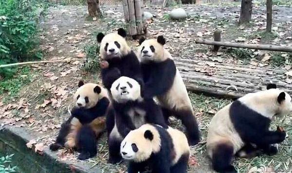 除了当年出生的趴趴熊们,月亮产房的室外活动室住着前一年出生的滚滚们,这些滚滚大多6个月-18个月之间,是熊猫一生最活泼、最萌的阶段。想象一下,十几只大小刚刚好的萌团子组团在院子里翻滚、互怼、洗澡、卖萌,那是怎样壮观的场景?而且时不时奶爸奶妈还会为了配合拍摄,当众给你表演收猫、洗猫、篮筐逗猫、扫落叶逗猫、盆盆奶逗猫等精彩绝伦的大戏,简直颠覆你一切对于动物园看熊猫又懒、又脏、又无趣的世界观,让你从此打开新世界的大门,爱上这种卖萌为生的猛兽。