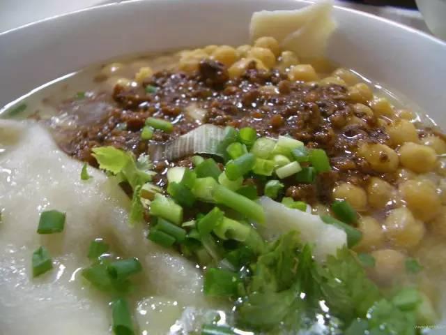 豆汤有素豆汤、肥肠豆汤、肘子豆汤等。肥肠肚汤当然是特色,豌豆软绵绵的,肥肠也清洗得干净,完全没有异味。
