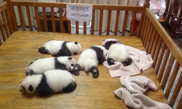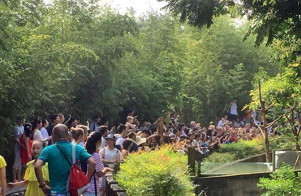 这时候你会看到两个分岔路,左边是去室外活动场的,直行是室内的,别犹豫先去室内。你要知道,一旦人多起来,室内游览通道会排起几百米的队伍,在你看到熊猫前挪动一步都是艰难的,看到熊猫之后却被保安像赶牲口一样哄着走,基本上排队一小时,看猫3分钟是常有的事情,所以不趁着没人好好看看那就太对不起自己了。室内的玻璃屋里通常放着当年出生的滚滚们,他们有的还是育儿箱里粉色的小老鼠,有的则刚刚上好黑白的颜色,还有的已经是毛茸茸的趴趴熊,它们有时排成一字形,有时排成圆圈圈,静止中偶尔有些悸动,无论如何肯定能妥妥儿地萌你一脸血。