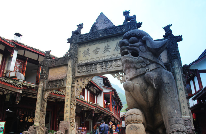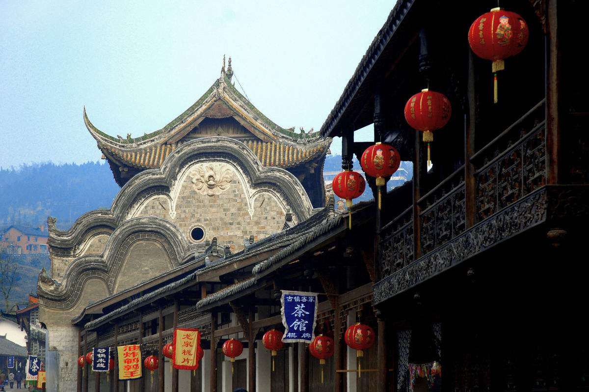 青石板铺就的街面,木柱青瓦的楼阁房舍,镂刻精美的栏杆窗棂,无不给人以古朴宁静的感受。镇内还有6棵树龄在300年以上的黄角树,枝繁叶茂,遮天蔽日,给古镇更增添了许多灵气。