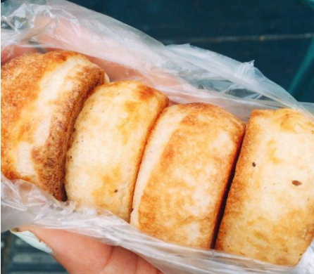 1、哑巴熨斗糕 地址:较场口磁器街 一定要认准,是个老爷爷的摊位。一种糯米做的点心,烤的焦焦的黄黄的。味道甜甜的,热的时候吃最好外面脆脆的,里面很松软。比较适合当早餐吃。