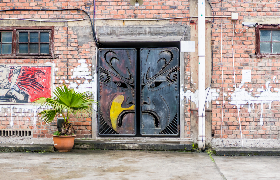 鹅岭二厂文创公园:改造的老厂房,保留了独栋旧楼原有的风貌,加入了现代设计的艺术风格。老与新的糅合,独具魅力。各种有特色的涂鸦墙和街景:一家名为片场世界的主题店,有着复古的打字机和老照片。这里甚至有环保主题大楼,画展和手工艺展览。