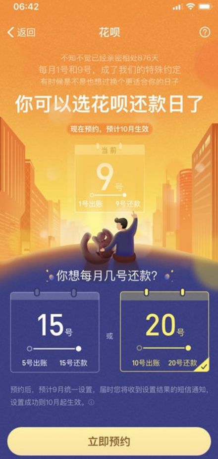 下面是今天的其他大新闻 # 支付宝花呗还款日开启预约调整 每月可选 15 日 20 日还款