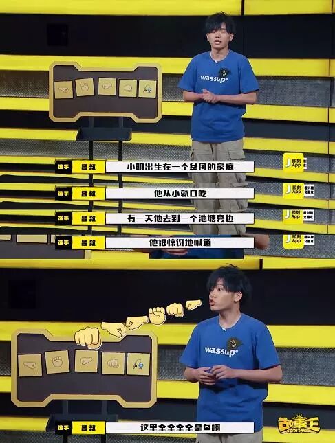 又比如,你也不知道你啥时候就接了一个选手创造的密集笑点,比如用生命演绎谐音梗的时候。