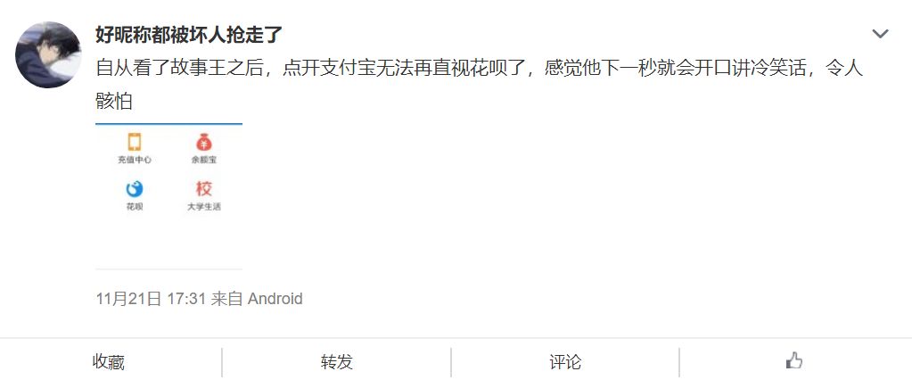 从节目效果及观众们的反馈来看,花小呗已经成功地实现了其戏精人设的渗透,并通过节目内容建立了可以沟通的语境氛围,刺激年轻受众与品牌的交流欲,令人印象深刻又不会觉得这是广告的突兀感,突破了粗暴的广告植入方式,更加立体地展示了品牌形象。