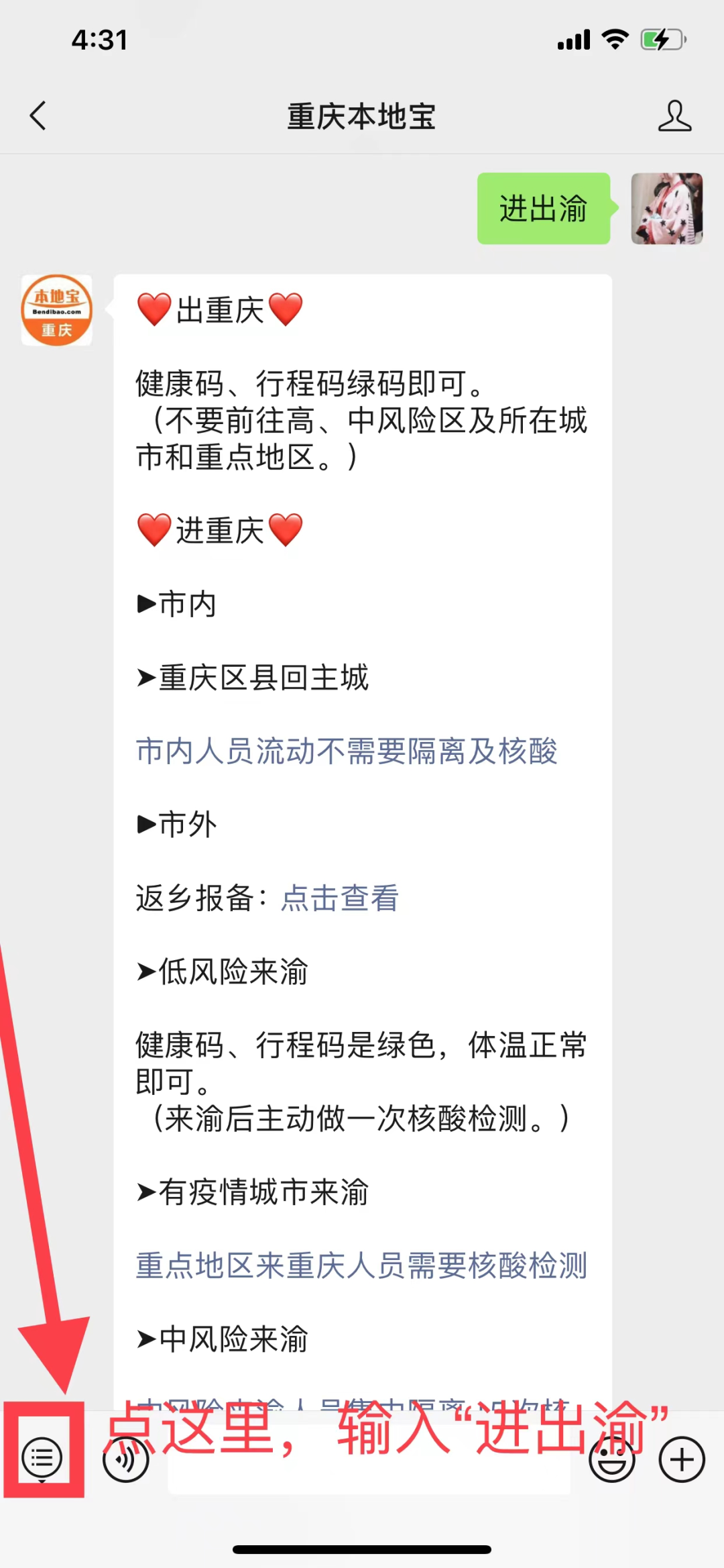 回复【进重庆】获取进出重庆是否要隔离及核酸