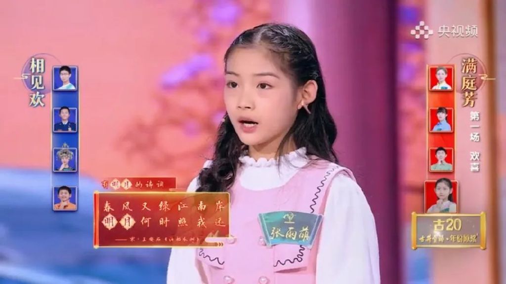 在情境共答环节,张雨萌与其他选手心有灵犀,细细体悟情境,再次为本队赢得分数。点评环节,她不骄不躁,认真听康震老师和蒙曼老师的讲解,不断汲取传统文化养分。