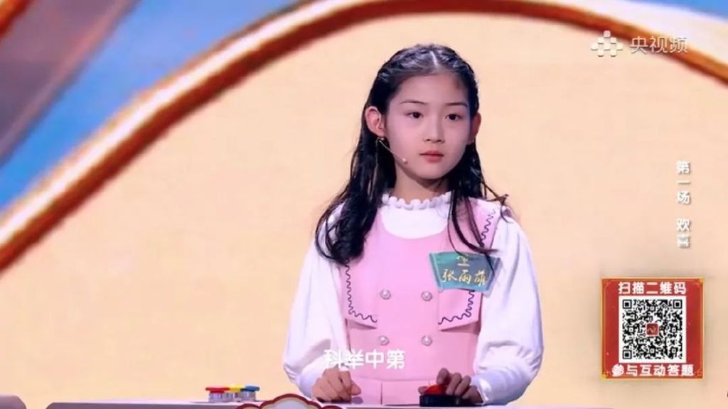 在两两对抗赛这一轮中的线索题中,张雨萌根据所提供的线索得出线索中所描述的喜事是科举中第,率先抢答成功,为自己及团队又赢得一分。